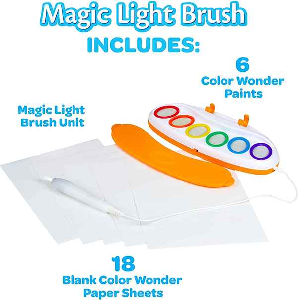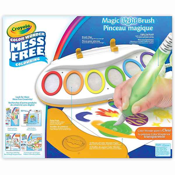 با قلم موی جادویی Color Wonder، رنگآمیزی جادویی است. اگرچه رنگهای Color Wonder شفاف هستند، اما قلم مو برای نشان دادن رنگ روشن میشود، رنگهای Color Wonder بدون کثیفکاری هستند و فقط روی کاغذ مخصوص Color Wonder ظاهر میشوند، نه روی پوست، لباس یا دیوار. این مجموعه رنگهای Color Wonder طوری طراحی شده است که از خشک شدن جلوگیری کند، بنابراین بچهها میتوانند بارها و بارها از آن استفاده کنند.