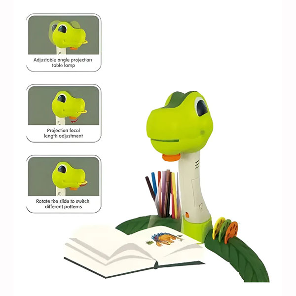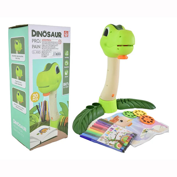 لوازم جانبی صوتی پروژکتور طراحی دایناسور این یک اسباببازی منحصر به فرد و تعاملی است که سرگرمی، خلاقیت و آموزش را برای کودکان فراهم میکند. این پروژکتور شکل دایناسور بامزهای دارد که توجه کودکان را به خود جلب میکند.این مجموعه همچنین به عملکرد صدا مجهز است که نقاشی را برای کودکان لذتبخشتر میکند. ابعاد پروژکتور: 36 سانتیمتر در 33 سانتیمتر در 9 سانتیمتر است که نگهداری آن را آسان میکند. جعبه ابزار برگ شکل به عنوان یک نظمدهنده کاربردی عمل میکند که میتوانید تمام عناصر مجموعه را در آن نگهداری کنید. این راه حل ایدهآلی برای کمک به شما در منظم ماندن و جلوگیری از گم شدن لوازم جانبی است. این مجموعه همچنین شامل سه کاشی با تصاویر حیوانات مختلف است. وقتی آنها را در دهان دایناسور قرار میدهید، قسمتهای بیرون زده حیوانات ظاهر میشوند. علاوه بر این، شامل مجموعهای کامل از ابزارهای نقاشی، از جمله یک دفترچه یادداشت و 12 ماژیک رنگی است. به لطف این، کودکان میتوانند نقاشیهای خود را خلق کنند. این اسباببازی ترکیبی از آموزش، سرگرمی و خلاقیت است. همچنین راهی عالی برای توسعه مهارتهای هنری، تخیل کودکان و یادگیری در مورد حیوانات مختلف است. این هدیهای عالی برای هنرمندان کوچک و دوستداران دایناسور است.