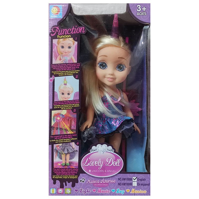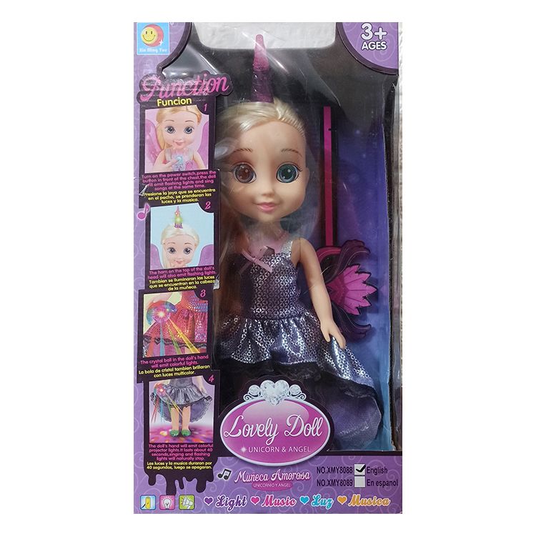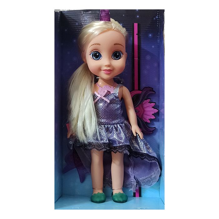 عروسکی زیبا تک شاخ که با درخشش چشمان آبی و بیشتر دختر کوچولوی شما را مجذوب خود می کند.هنگام فشار دادن مدال روی گردن عروسک، شروع به خواندن آهنگ می کند، روشن می شود و توپی که در دست عروسک است نورهای رنگی را به نمایش می گذارد. همه اینها برای 40 ثانیه.