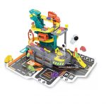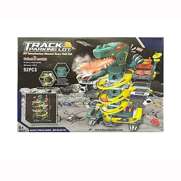 این محصول موزیکال می باشد و در قسمت میانی خود یک آسانسور اتوماتیک تعبیه شده که این امکان را دارد با فشردن دکمه مربوطه ماشین ها را در هر طبقه که تمایل داشتین پیاده کنید. همچنین در هر طبقه به غیر از پیست؛ پارکینگ در کناره ها پیش بینی شده است. دهان این دایناسور قابل تولید دود رنگی را داشته که بر جذابیت آن افزوده است. این نمونه 42 تکه می باشد. زمانی که ساخته شود ابعاد آن 33*33*59.7 سانتیمتر است. همچنین دارای یک فرش با علایم خیابانی به ابعاد 45*64 سانتیمتر می باشد.