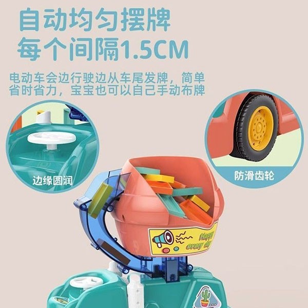 دومینو نوعی بازی است که به وسیلهٔ قطعههای مستطیلی کوچکی انجام میشود و نوعی از سرگرمی دومینو است که در آن فرد مهره های دومینو را پشت سرهم چیده و طرح ها و شکل های متنوعی را ایجاد می کند، اما شاید اغلب چیدن قطعات دومینو برای کودکان سخت و خسته کننده باشه، ماشین دومینو رو به شما عزیزان پیشنهاد میکنیم که طراحی خلاقانه و سرگرم کننده ای داره و بکمک اون دیگه لازم نیست خودتون زحمت چیدن قطعات رو بکشید ، چون ماشین دمینو در حین حرکت قطعات را در مسیری با پیچ و خم و فواصل مناسب میچینه و کودک با خراب کردن آن لذت بیشتری از بازی میبره. این محصول بخاطر داشتن بسته بندی مناسب علاوه بر استفاده شخصی میتونه انتخاب مناسبی برای هدیه به عزیزانتون هم باشه و به کمک اون می تونید ساعات سرگرم کننده ای رو برای عزیزانتون ایجاد کنید. این محصول دارای یک مخزن است که با پرکردن آن با دومینوها چیده می شوند. این قطار برای کودکان بالای سه سال مناسب است