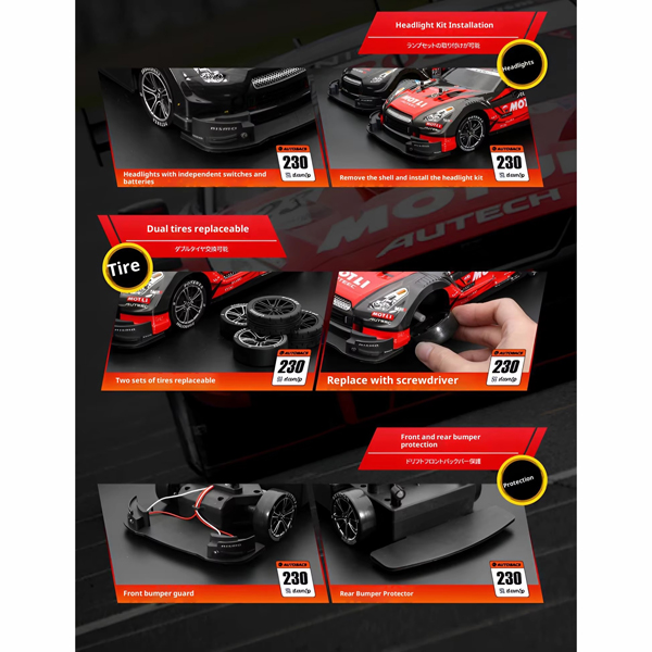 - جنس تایر: لاستیکی (چهار چرخ اضافه مخصوص دریفت داخل جعبه موجود است)