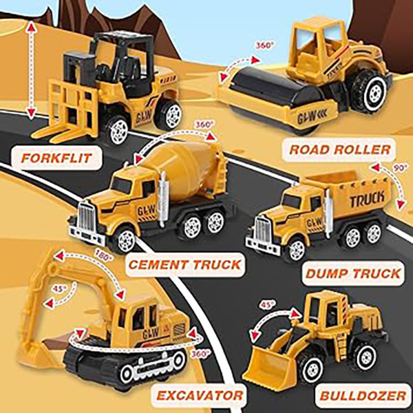 اسباببازیهای آموزشی: لیفتراک، جرثقیل، بولدوزر، غلتک، کامیون زباله، میکسر بتن و بیل مکانیکی با قطعات متحرک خود قابل اجرا هستند. فرزندان شما به طور خودکار مهارتهای تفکر، هماهنگی دست و چشم، مهارتهای حرکتی و فرآیندهای شناختی خود را توسعه میدهند.