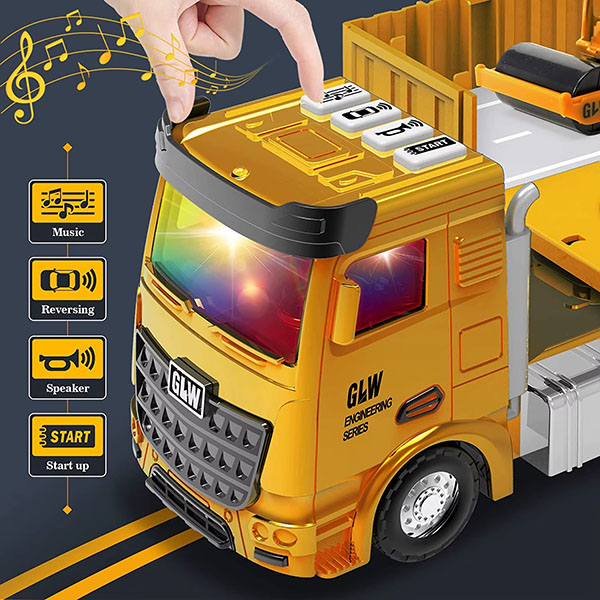 صدا و نور واقعی: دکمه بالای کامیون را فشار دهید و فرزندانتان جذب صداهای واقعی موتور (روشن کردن موتور، بوق، زنگ هشدار دنده عقب، ملودی) و چراغهایی میشوند که تجربه بازی آنها را بهبود میبخشند. به 3 باتری قلمی نیاز دارد (شامل نمیشود).